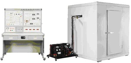 實訓裝置主要由控制屏、實訓桌、風冷制冷機組及拼裝式冷庫等組成