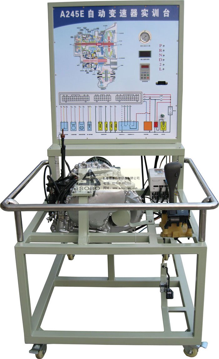 本變速器實訓臺是本公司采用一汽豐田自花冠動變速器為適應汽車教學需求而研制的,該實訓臺由電控變速器(八成新)、操作顯示面板及發(fā)動機彩色電氣原理圖電腦控制柜、可移動式臺架(萬向腳輪)、驅(qū)動系統(tǒng)(腳踏式油門踏板)變頻電機驅(qū)動、剎車系統(tǒng)(腳踏液壓盤試剎車)、啟動系統(tǒng)(電門鎖方式啟動)、車速傳感器、電磁閥執(zhí)行器、原車電腦、具有發(fā)動機運轉(zhuǎn)及顯示(轉(zhuǎn)速.車速.檔位)、液壓油壓力顯示表(顯示換檔過程油壓)、自動變速器電磁閥工作指示LED燈、原車OBD-Ⅱ診斷座、故障設置區(qū)可設置12路故障(老師設置任一路線路故障)、故障排除區(qū)(學生通過各種儀器、儀表、)在面板上用專用排故線連接排除故障、傳感器信號模擬等多項功能、具結(jié)構(gòu)緊湊、操作方便、安全可靠、教學直觀、是汽車自動變速器實物教學不可缺少的實驗室設備之一。