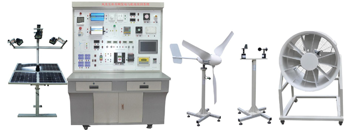 系統(tǒng)裝置由太陽(yáng)能光伏電板、雙軸跟蹤控制模塊、蓄電池模塊、太陽(yáng)能控制器模塊、太陽(yáng)能逆變器模塊、模擬風(fēng)洞發(fā)電模塊、開關(guān)控制模塊、環(huán)境監(jiān)測(cè)模塊、上位機(jī)監(jiān)控模塊,儀表顯示部分,(各功能轉(zhuǎn)換接口模塊)等組成;各控制系統(tǒng)集成于風(fēng)能發(fā)電、光伏發(fā)電為一體的教學(xué)實(shí)訓(xùn)臺(tái);各系統(tǒng)通過(guò)連接電纜進(jìn)行連接,形成一套可完成風(fēng)力及光伏發(fā)電、同步并網(wǎng)、離網(wǎng)電源的實(shí)驗(yàn)及教學(xué)演示。幫助學(xué)生理解太陽(yáng)能并網(wǎng)、離網(wǎng)及風(fēng)力發(fā)電系統(tǒng)的原理,從而起到學(xué)習(xí)工程實(shí)際應(yīng)用技能的作用。