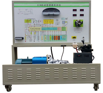 該設(shè)備采用電控自動(dòng)變速器總成為基礎(chǔ),可調(diào)速三相異步電動(dòng)機(jī)做動(dòng)力源,對(duì)自動(dòng)變速器進(jìn)行檔位顯示、空檔起動(dòng)、前進(jìn)檔及倒檔運(yùn)行等工況實(shí)踐操作。真實(shí)展示電控自動(dòng)變速器組成結(jié)構(gòu)和工作過程。