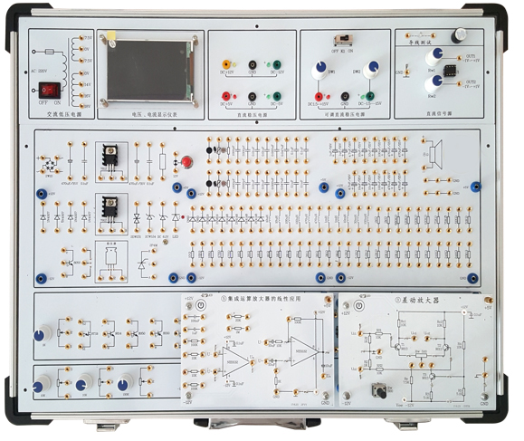 創(chuàng)新型模塊化模擬電路實(shí)驗(yàn)箱由全鋁合金箱體、高性能線性電源和實(shí)驗(yàn)電路板組成。其中實(shí)驗(yàn)電路既可以采用固定功能模塊方式,也可以自行搭建實(shí)驗(yàn)電路,電路原理和元器件符號(hào)清晰,實(shí)驗(yàn)用元器件全部焊裝在線路板的反面,安全可靠,不易損壞。本實(shí)驗(yàn)箱適用于本專院校所有電類和非電類專業(yè)《模擬電子技術(shù)》、《電子線路》等課程的實(shí)驗(yàn)教學(xué)。
