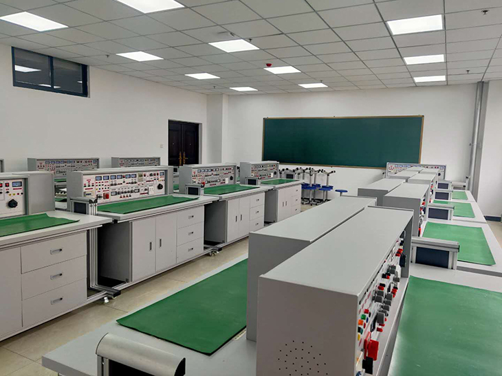 1、實(shí)驗(yàn)桌:12臺(tái)學(xué)生實(shí)驗(yàn)桌,一桌兩座,桌子外形尺寸:160×70×80cm。桌中央配置九孔電路板(尺寸:35×90cm),根據(jù)實(shí)驗(yàn)電路在其上任意拼插元件盒成實(shí)驗(yàn)電路。元件盒盒體透明直觀(guān),內(nèi)裝元件一目了然,盒蓋印有永不褪色元件符號(hào),線(xiàn)條清晰美觀(guān),盒蓋與盒體采用壓卡式,維修拆裝方便。每張臺(tái)桌配有一粒膠皮板,保護(hù)通用電路板與桌面(如需要在桌面放置電動(dòng)機(jī),焊接等)。臺(tái)桌下部是元件儲(chǔ)存柜,放置實(shí)驗(yàn)元件。