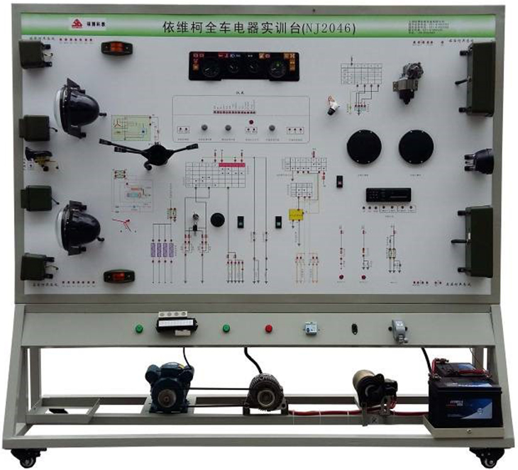 2.設(shè)備面板采用耐創(chuàng)擊、耐污染、防火、防潮的高級(jí)鋁塑板,表面經(jīng)特殊工藝噴涂底漆處理;面板打印有永不褪色的彩色電路圖;學(xué)員可直觀對(duì)照電路圖和實(shí)物,認(rèn)識(shí)和分析汽車整車電器各系統(tǒng)的工作原理。