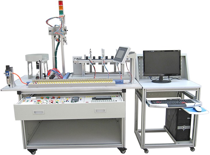 光機電氣一體化控制實訓系統(tǒng)"是依據(jù)機電一體化教學的要求而精心研制的。它在接近工業(yè)生產(chǎn)制造現(xiàn)場基礎上又針對教學及實訓目的進行了專門設計,強化了機電一體化的安裝與調(diào)試能力。實訓裝置由型材導軌式實訓臺、典型機電一體化設備機械部件、PLC