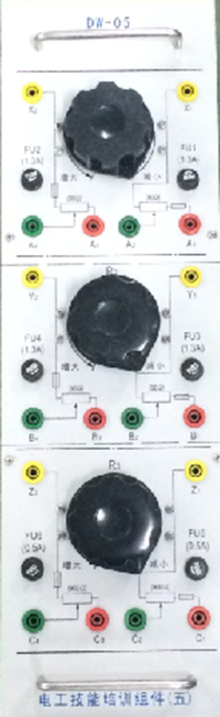 掛箱上已安裝有熔斷器、鈕子開關(guān)、交流接觸器、時間繼電器、直流接觸器、按鈕開關(guān)、信號指示燈、熱繼電器等,所有器件均采用國內(nèi)外知名品牌。各種實訓元器件的接線都在接線端子排上進行接線,避免了因長期在器件本身進行螺絲拆裝而導致元器件的損耗,通過走線槽走線,進行工藝布線訓練。實訓電路與裝置電源的連接通過安全插座和高可靠護套結(jié)構(gòu)手槍插連接線,安全快捷。