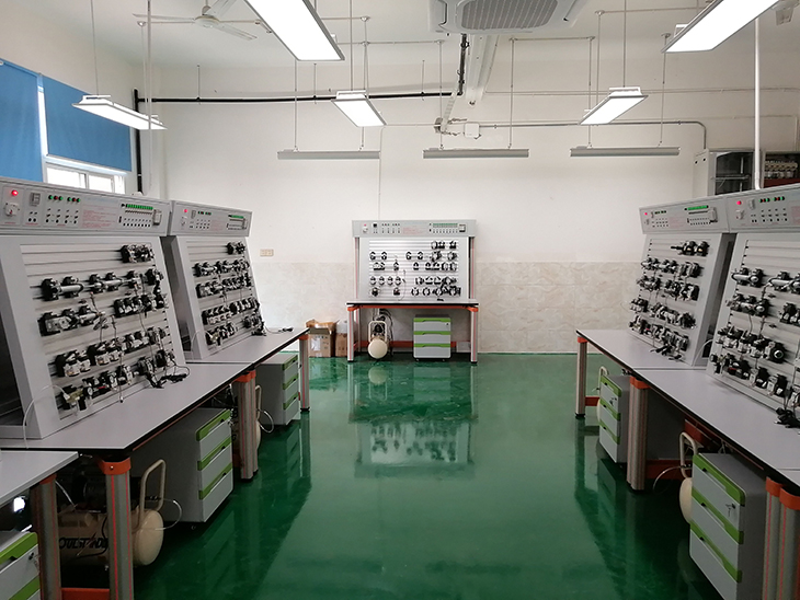 液壓實驗實訓(xùn)室設(shè)備可承擔(dān)機電一體化技術(shù)、機械制造與自動化、模具設(shè)計與制造、數(shù)控加工技術(shù)以及汽車維修等專業(yè)的液壓與氣動技術(shù)、機電設(shè)備維修、機電設(shè)備安裝與調(diào)試、機電一體化設(shè)計等課程的實驗或?qū)嵱?xùn)。 液壓實驗實訓(xùn)臺主要承擔(dān)機械工程及自動化專業(yè)方向的本、?埔簤簜鲃拥恼n程實驗。能夠顯著增強學(xué)生的認(rèn)識和理解,同時也能鍛煉學(xué)生的動手能力,亦可為社會培養(yǎng)一批液壓技術(shù)方面的專項人才。 液壓實驗實訓(xùn)臺主要研究方向為液壓關(guān)鍵元件設(shè)計,機電液系統(tǒng)感知與智能控制,機電液系統(tǒng)先進(jìn)材料研究。 液壓與氣動技術(shù)實驗室設(shè)備主要承擔(dān)機電類相關(guān)專業(yè)《液壓與氣動技術(shù)》課程的專業(yè)實驗任務(wù)。能提供包括液壓泵和控制元件結(jié)構(gòu)拆裝與分析實驗、系統(tǒng)回路控制實驗、系統(tǒng)性能實驗和氣動技術(shù)實驗在內(nèi)的不同類型的實驗。液壓實驗室所開設(shè)的實驗和液壓(或氣動)行業(yè)中的液壓系統(tǒng)(或氣動系統(tǒng))的設(shè)計、連接調(diào)試、維護等緊密相關(guān),通過機-電-液一體化綜合控制實驗,學(xué)生可系統(tǒng)地學(xué)習(xí)PLC程序設(shè)計與調(diào)試、液壓回路的設(shè)計與調(diào)試,并且通過力控軟件使相關(guān)知識有機地結(jié)合在一起,實現(xiàn)對硬件的動作,從而提高各門課程的綜合應(yīng)用能力。