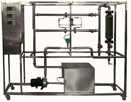 1、水轉子流量計: 流量范圍 0.4~4m3/h。 2、孔板流量計: 流量范圍0.4~8m3/h,孔板喉徑:Φ17mm。 3、文丘里流量計:流量范圍0.4~8m3/h,文丘里喉徑:Φ13mm。 4、渦輪流量計:流量范圍0.4~8.0m3/h,4-20mA遠傳輸出,流量檢測機構。 5、壓差傳感器:量程0~150KPa,4-20mA遠傳輸出,差壓檢測機構。 6、304不銹鋼離心泵:功率550W。 7、水箱:304不銹鋼材質,容積≥80L,帶貯水排空底閥,管路循環(huán)回水與泵吸入口間隔板設計。 8、管路:304衛(wèi)生級不銹鋼材質,采用不銹鋼快裝活接與管路連接;管道活接連接渦輪流量計。 9、閥門:采用304不銹鋼閥和優(yōu)質銅閥。 10、溫度傳感器:Pt100,分辨率0.1℃,精度0.5%,數(shù)字顯示。 11、宇電AI501 流量數(shù)字顯示儀。 宇電AI501 溫度數(shù)字顯示儀。 宇電AI501 壓差數(shù)字顯示儀。 12、電器:接觸器、開關、漏電保護空氣開關。 13、304不銹鋼儀表柜:測控、電器設備在實驗架上。 14、外形尺寸:1900*500*1800mm(長×寬×高),304不銹鋼框架,帶移動腳輪及禁錮腳。 15、工程化標識:包含設備位號、管路流向箭頭及標識、閥門位號等工程化設備理念配套,使學生處于安全的實驗操作環(huán)境中。 |