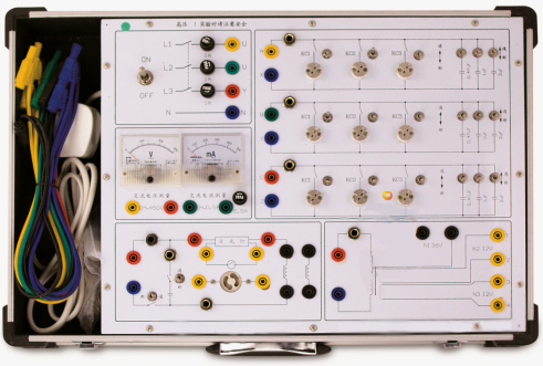 電工技術(shù)實(shí)驗(yàn)箱主要是進(jìn)行電工學(xué)及電路原理中的強(qiáng)電部分實(shí)驗(yàn),如單相交流電路、三相電路、日光燈電路實(shí)驗(yàn)。本實(shí)驗(yàn)箱由模塊單元和元件庫(kù)相結(jié)合的板面構(gòu)成,全部采用歐洲標(biāo)準(zhǔn)的安全插座和安全實(shí)驗(yàn)導(dǎo)線,連線方便,接觸可靠,而且壽命長(zhǎng)、效率高,有效預(yù)防觸電隱患。實(shí)驗(yàn)面板上印有元件符號(hào)及主要參數(shù)便于學(xué)生識(shí)別。實(shí)驗(yàn)箱結(jié)構(gòu)緊湊實(shí)用直觀,安全可靠,能有效培養(yǎng)學(xué)生的動(dòng)手能力,維修方便、簡(jiǎn)捷。可滿足各類(lèi)高、中等院校及職業(yè)技術(shù)類(lèi)院校開(kāi)設(shè)的電工典型實(shí)驗(yàn)。