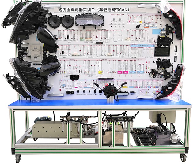 汽車電氣設(shè)備實(shí)訓(xùn)室。汽車電器設(shè)備實(shí)訓(xùn)室包含有汽車燈光系統(tǒng)、車載網(wǎng)絡(luò)系統(tǒng)、全車電器系統(tǒng)、汽車啟動系統(tǒng)、汽車空調(diào)系統(tǒng)、全車線路試驗(yàn)臺、等實(shí)訓(xùn)教學(xué)設(shè)備。該實(shí)訓(xùn)室可以承擔(dān)《汽車構(gòu)造》、《汽車電器設(shè)備》、《汽車電控系統(tǒng)》、《汽車檢測與診斷》等課程的實(shí)踐教學(xué)任務(wù)?梢杂糜谘芯俊⒎治鋈囯娖飨到y(tǒng)、燈光系統(tǒng)、儀表系統(tǒng)等電器設(shè)備的電路及功能。利用這些系統(tǒng)進(jìn)行實(shí)踐教學(xué),使學(xué)生熟悉汽車電器的結(jié)構(gòu)和工作原理,掌握各個系統(tǒng)的基本組成電路,掌握主要電路的檢測方法和系統(tǒng)的故障特征,從而具有一定的檢測和調(diào)校能力。