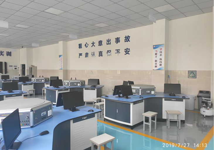 技能工作島由三邊弧形工作臺、六邊形實訓(xùn)控制屏及典型工作任務(wù)組成,能同時容納6名學(xué)生在設(shè)備上進行操作。