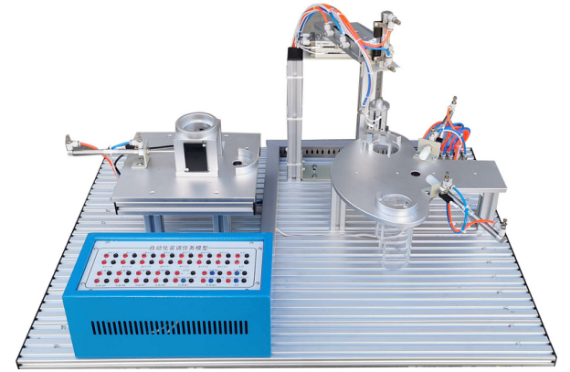 該任務(wù)由氣動機械手、分揀機構(gòu)、上料機構(gòu)、安裝網(wǎng)孔板、電氣接口板、電磁閥組等組成,安裝網(wǎng)孔板由有1.2mm優(yōu)質(zhì)不銹鋼鋼板加工制作,機構(gòu)件由鋁材機加氧化而成,機構(gòu)全部為散件提供,按教學(xué)要求由學(xué)員自己動手組裝、接線并通過接口板與外部連接調(diào)試。