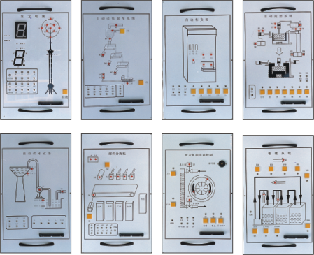 該裝置是為了配合PLC可編程控制器實(shí)驗(yàn)臺使用而設(shè)計(jì)的外接演示裝置。它由LED發(fā)光二極管、大型LED數(shù)碼管、直流電機(jī)、步進(jìn)電機(jī)等執(zhí)行機(jī)構(gòu)用其他外圍電路模擬實(shí)際工業(yè)控制過程中的狀態(tài),它形象生動的演示了PLC的整個(gè)執(zhí)行過程。通過該裝置,可以鍛煉學(xué)生的動手能力,能夠形象生動的執(zhí)行機(jī)構(gòu)驗(yàn)證自己編寫程序的正確性,掌握PLC的實(shí)際應(yīng)用,增強(qiáng)學(xué)生對PLC的學(xué)習(xí)興趣。演示掛箱后蓋由鋁合金注塑而成,箱體結(jié)構(gòu)合理,工藝先進(jìn),美觀大方。該裝置在演示屏上位置可任意移動、互換。