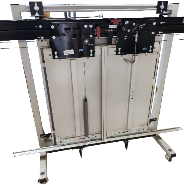 要求該裝置至少由鋼結構框架、層門等部件組成。按電梯開門方式的不同,設備至少分為中分門跟旁開門兩種類型。整體外觀要求簡潔、實用,能夠直觀地看到層門機構的全部器件及整個機械動作過程。