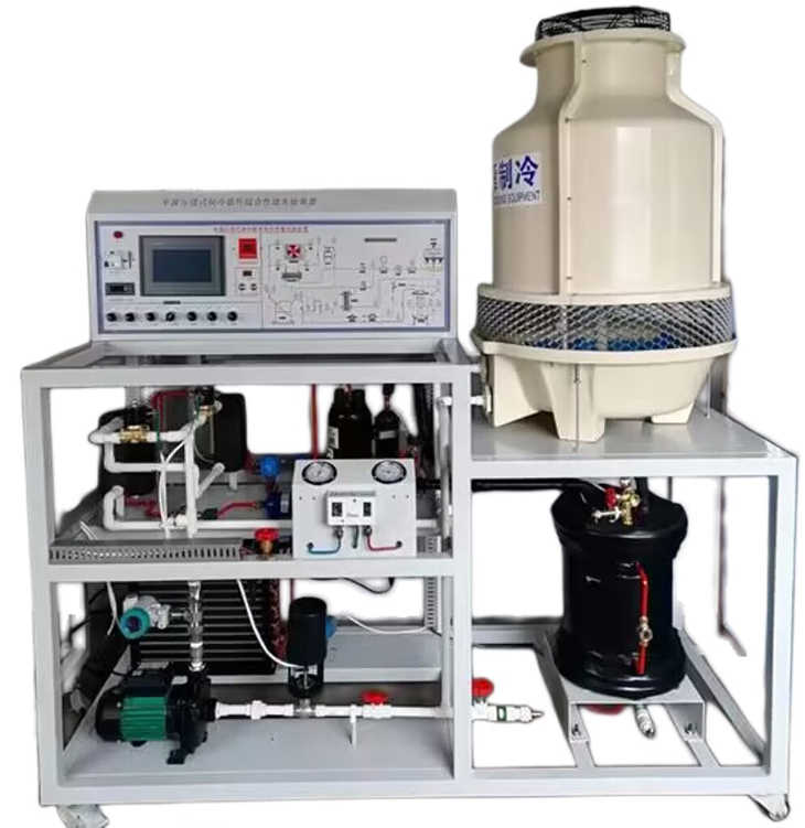 實(shí)驗(yàn)臺在原來的基礎(chǔ)上加裝冷卻塔,冷卻水實(shí)現(xiàn)了冷凝水自循環(huán)。冷卻塔流量:3T,電壓220V