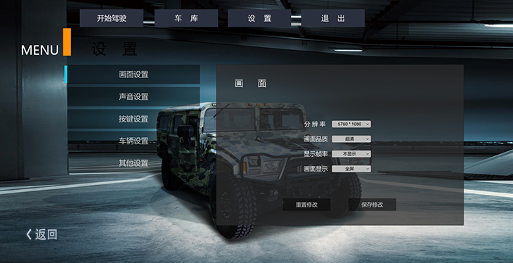 7.2、汽車設(shè)置界面:調(diào)整車輛各項(xiàng)動(dòng)力學(xué)參數(shù)、車輛后視鏡及視角調(diào)整。