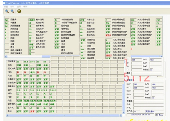 我公司生產(chǎn)的中央空調設備由廠家提供了中央空調測試維修控制程序軟件;能夠準確地快速確定故障發(fā)生在哪個機組,軟件同時我顯示空調100多個在線數(shù)據(jù)和運行狀態(tài),據(jù)不同的機型有不同的界面,具體為:1拖16(EVI)、1拖32、數(shù)碼模塊化1拖64、變頻模塊化1拖64、熱回收、單機直流變頻、單機交流變頻、智能變頻、單機420、單機900、模塊式風冷螺桿等所有中央空調機。
